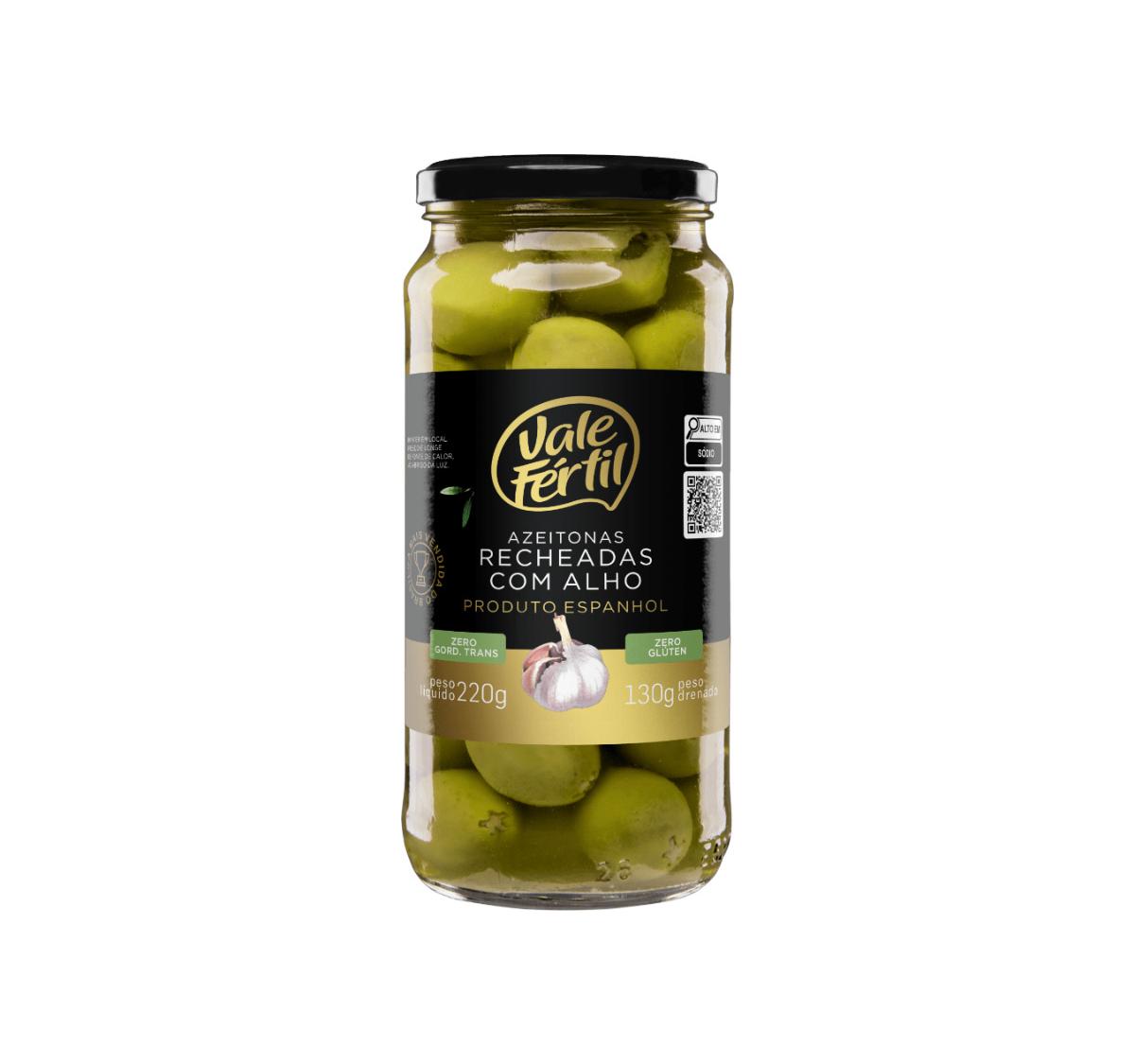 A azeitona verde recheada com alho da marca Vale Fertil é uma iguaria deliciosa e versátil, ideal para ser consumida como aperitivo, acompanhamento de saladas ou como ingrediente em diversas receitas.