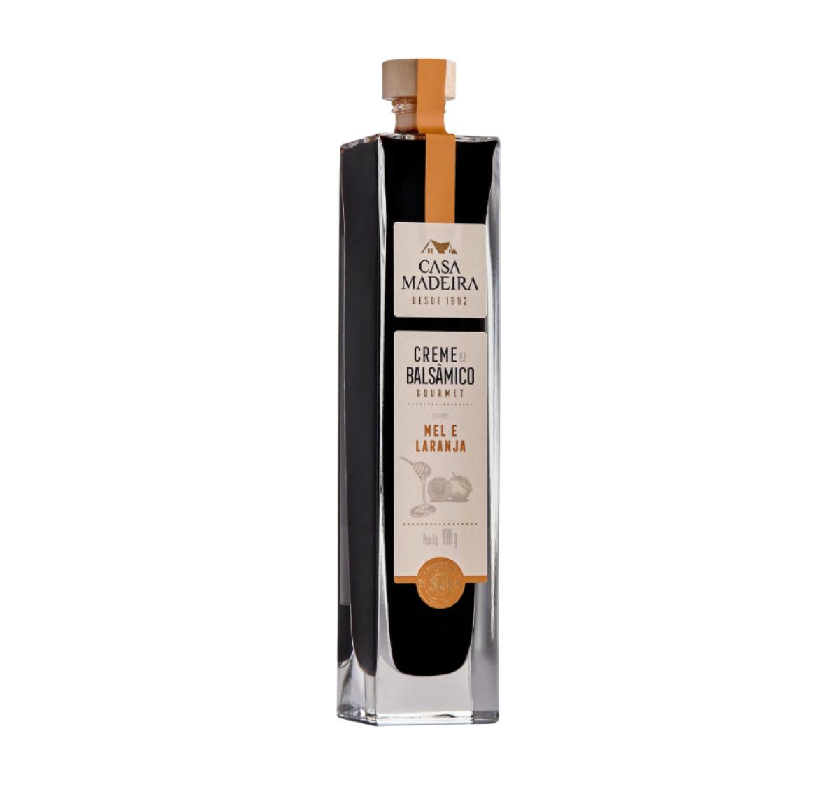 O Creme Balsâmico com Mel e Laranja Casa Madeira 100ml combina a tradição do aceto balsâmico com a doçura natural do mel e o frescor cítrico da laranja, resultando em um produto sofisticado e versátil. Ideal para realçar saladas, queijos, carnes grelhadas, sobremesas e até drinques, oferece equilíbrio perfeito entre acidez, doçura e notas frutadas.