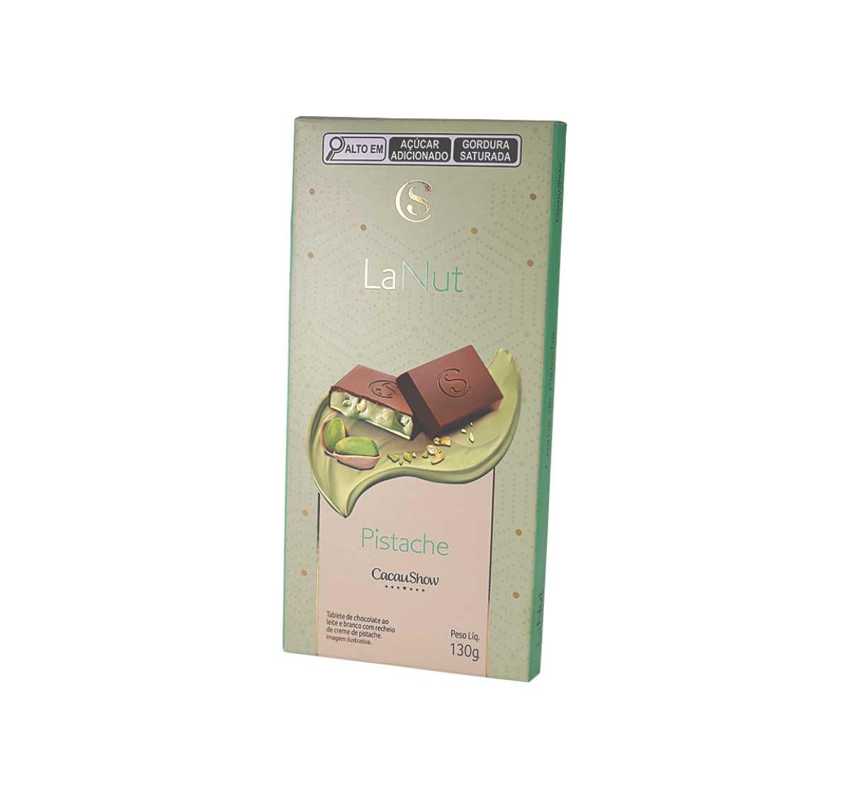 Descubra o sabor refinado do Tablete LaNut Choc Cacau Show 130g, uma combinação irresistível de chocolate ao leite e chocolate branco com um delicioso recheio cremoso de pistache. Criado para os paladares mais exigentes, esse tablete traz uma explosão de sabores e texturas, com pedaços crocantes e o toque suave e levemente salgado do pistache, que harmoniza perfeitamente com a doçura do chocolate.
