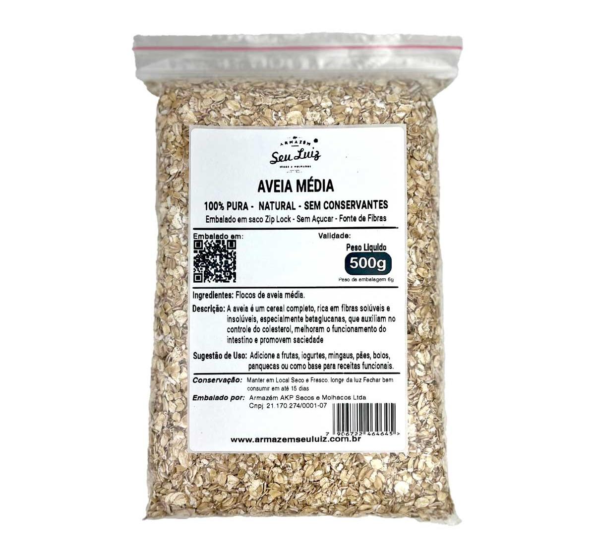 A Aveia Média em Flocos Armazém Seu Luiz 500g é um cereal 100% natural, rico em fibras, especialmente betaglucanas, que ajudam no controle do colesterol e proporcionam saciedade.