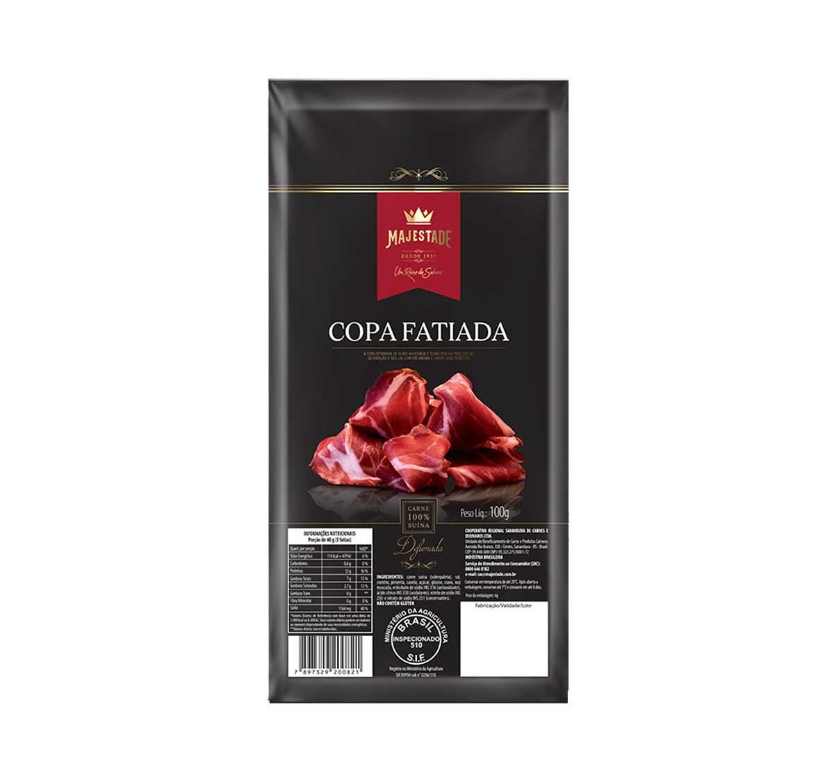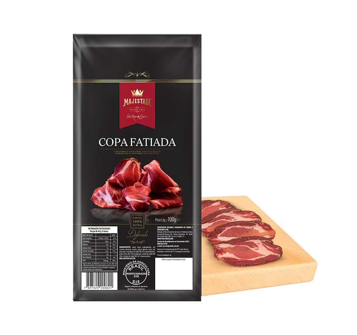 A Copa Fatiada Majestade 100g é uma iguaria clássica da charcutaria, elaborada a partir de cortes selecionados do lombo suíno.