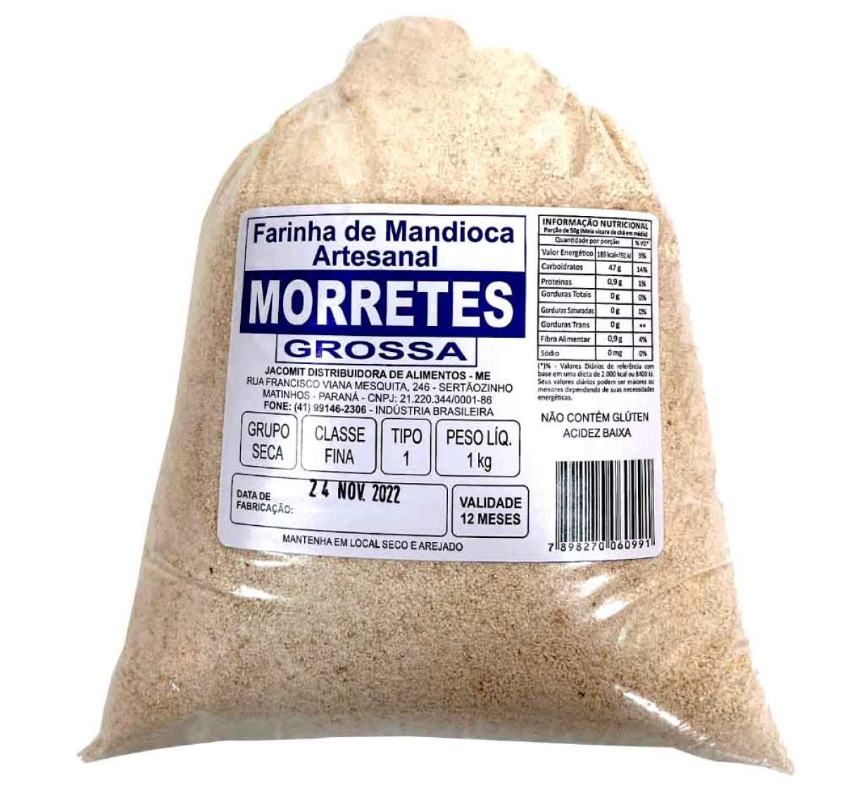 A farinha artesanal de mandioca grossa de Morretes é um produto típico da culinária paranaense, feito de maneira artesanal e com ingredientes selecionados. Produzida na cidade histórica de Morretes, no Paraná, esta farinha é uma verdadeira iguaria, capaz de agregar sabor e textura a diversos pratos.