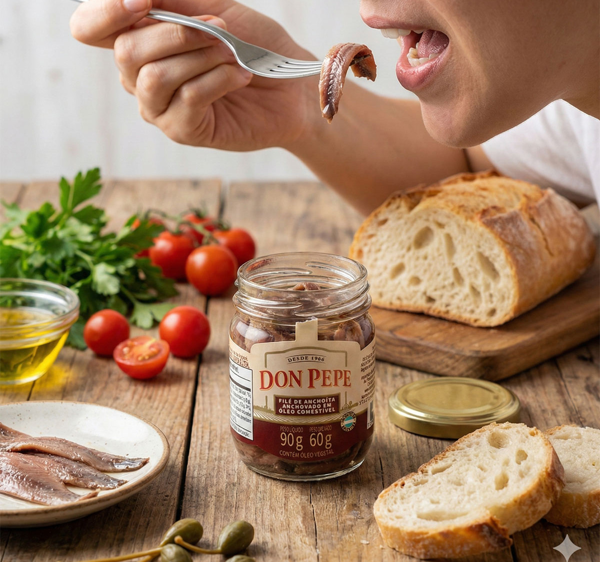 O Filé de Anchova Don Pepe 90g é um clássico da gastronomia mediterrânea, reconhecido pelo sabor intenso, textura macia e cura cuidadosa. Conservado em óleo de alta qualidade, é ideal para elevar receitas simples e sofisticadas, agregando profundidade e umami característicos das melhores anchovas.