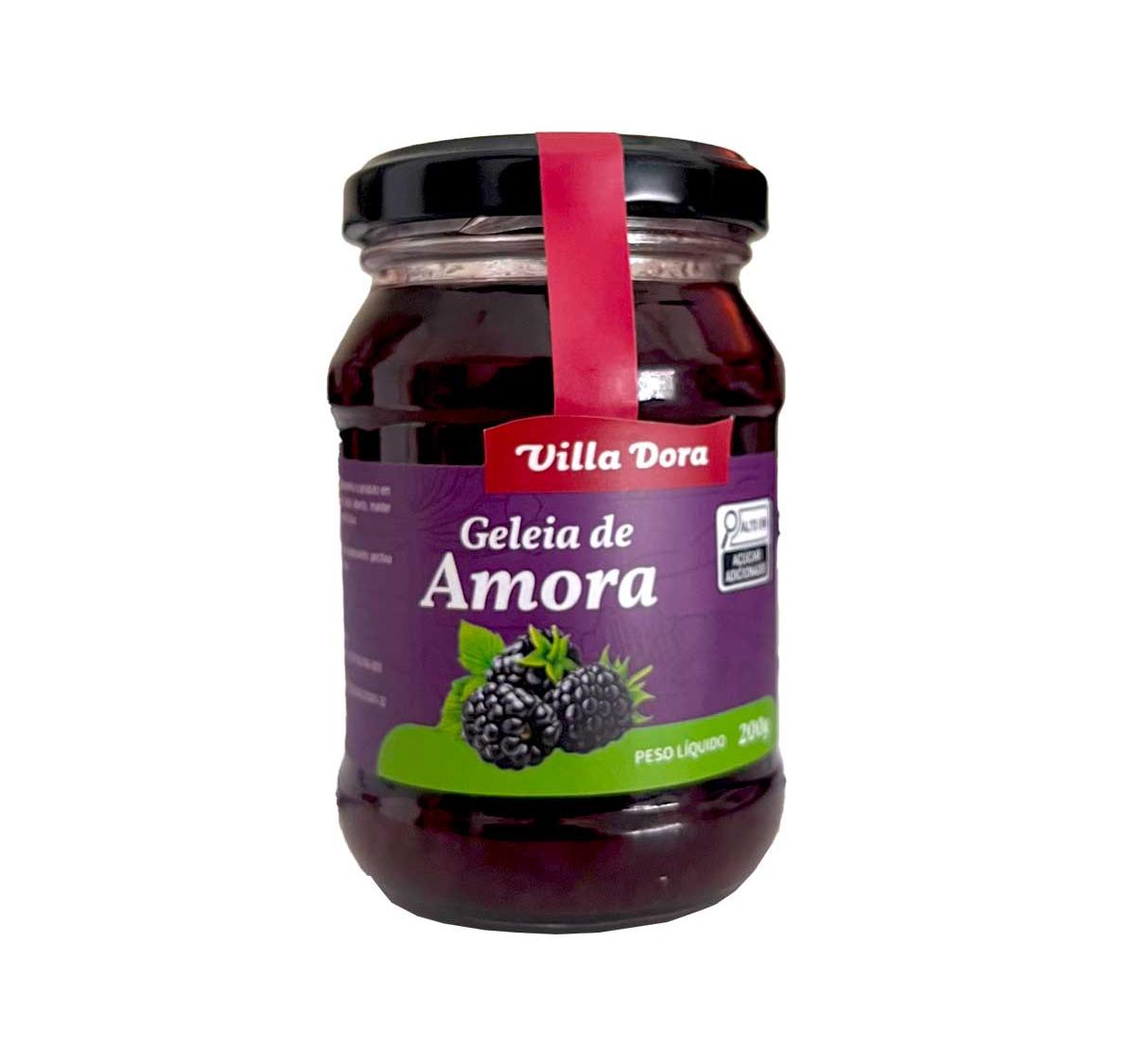 A Geleia de Amora Villa Dora Artesanal 200g é feita com amoras selecionadas e preparo 100% artesanal, preservando a intensidade da fruta e sua leve acidez natural. De sabor marcante e textura cremosa, é perfeita para acompanhar pães e torradas, rechear bolos e tortas, dar um toque especial em sobremesas e criar harmonizações gourmet com queijos e vinhos.