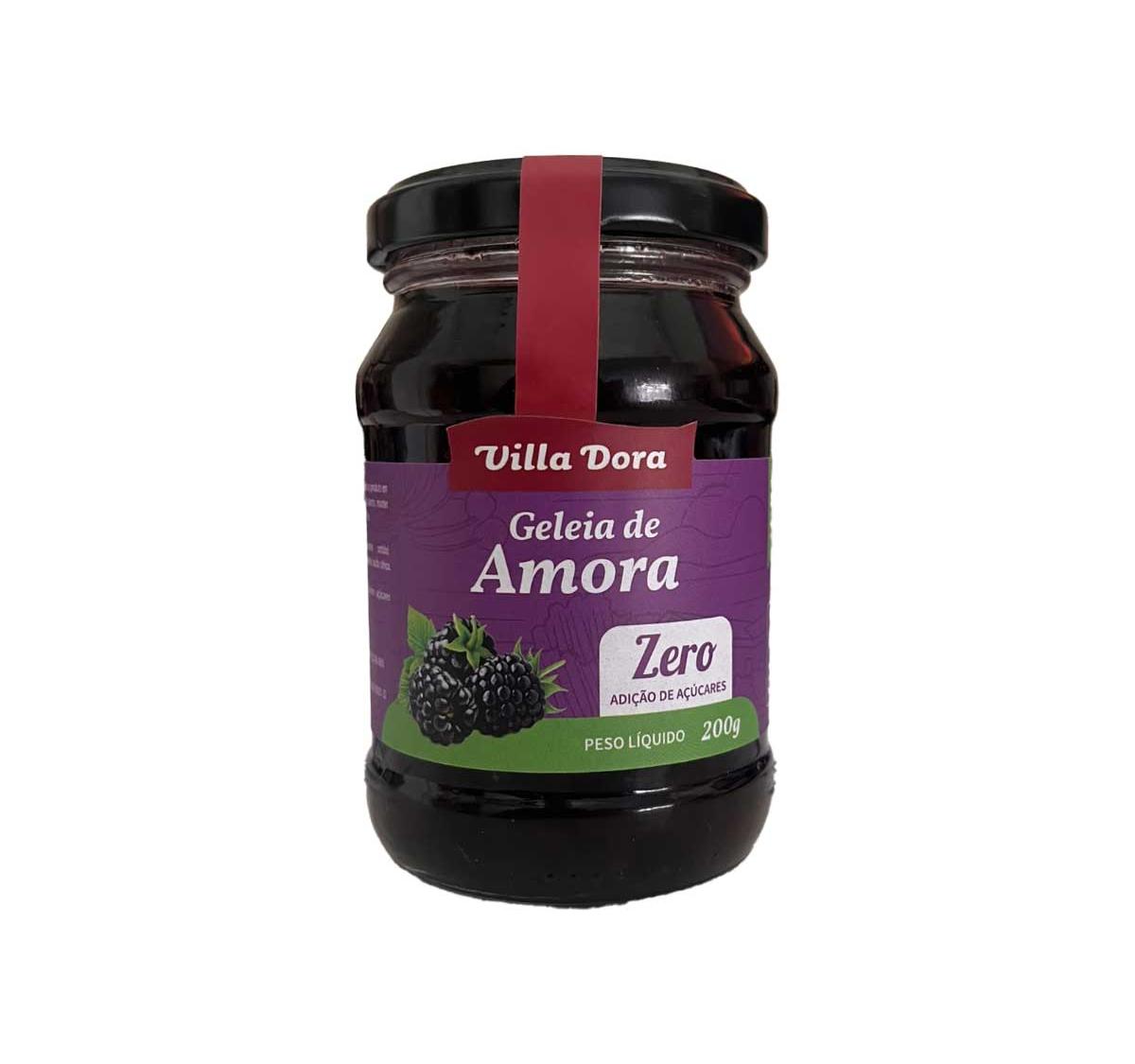 A Geleia de Amora Zero Villa Dora Artesanal 200g é produzida com amoras frescas e selecionadas, sem adição de açúcares, garantindo sabor autêntico e natural.