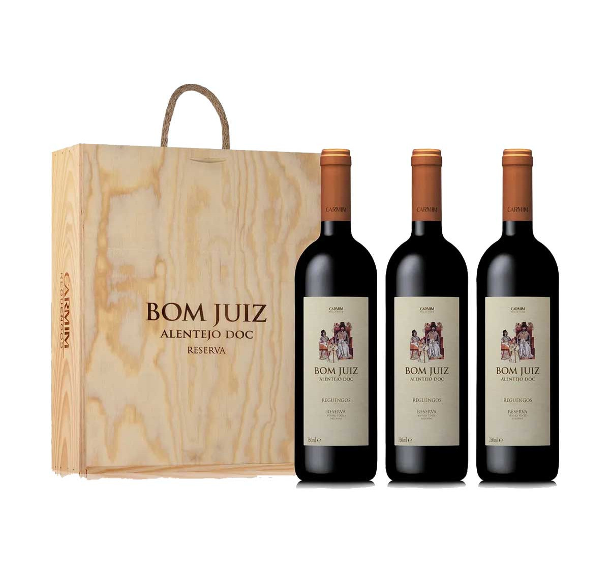 O Kit Vinho Português Bom Juiz Reserva acompanha 3 garrafas de 750ml e uma elegante caixa de madeira personalizada, perfeita para presentear ou colecionar. Produzido na renomada região do Alentejo (Portugal), o Bom Juiz Reserva é um vinho tinto encorpado, com notas de frutas vermelhas maduras, toques de baunilha e especiarias, resultado do envelhecimento em barricas de carvalho.