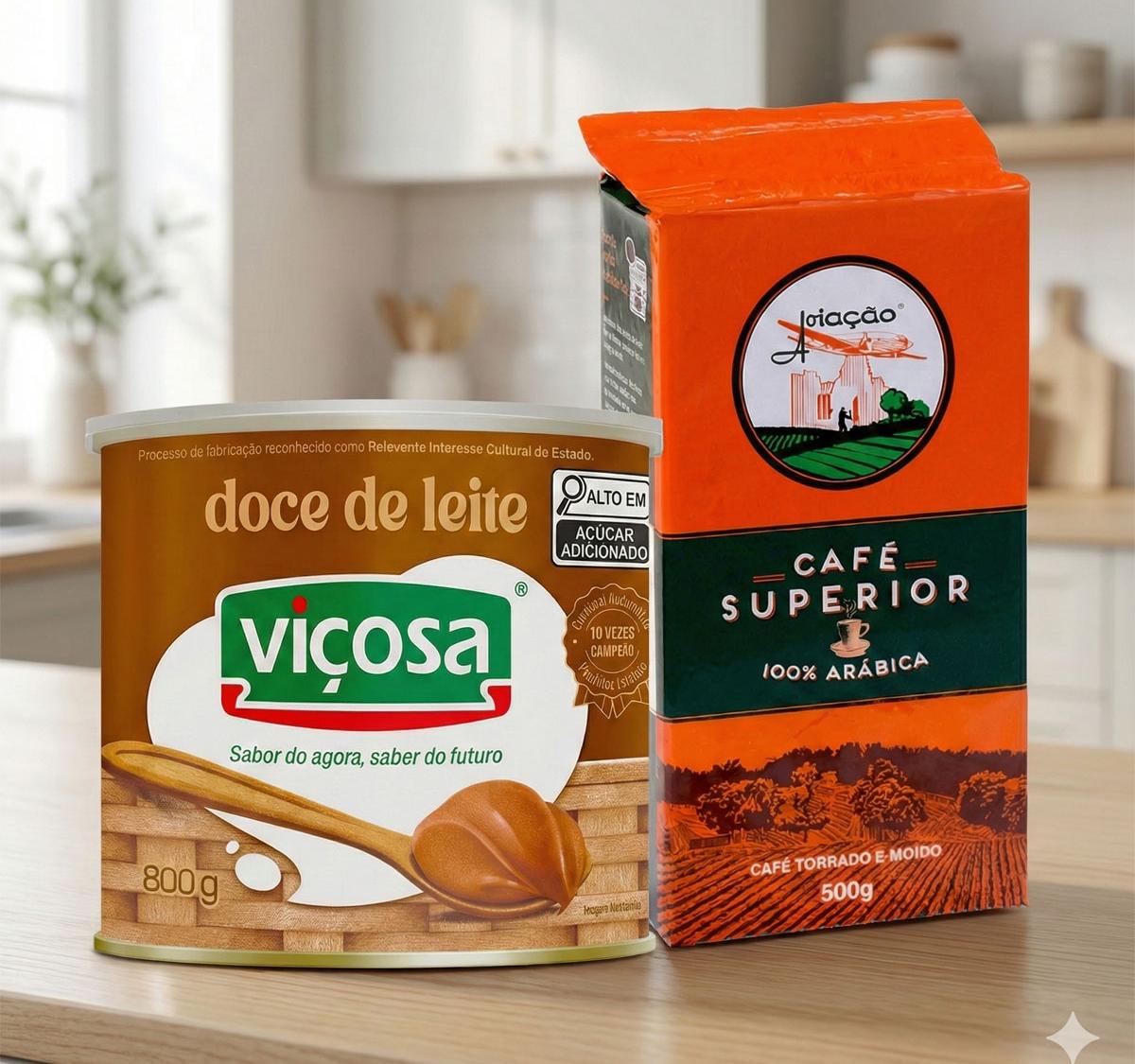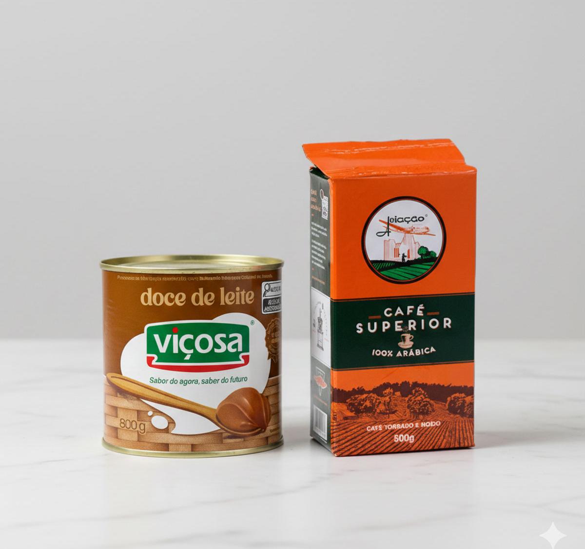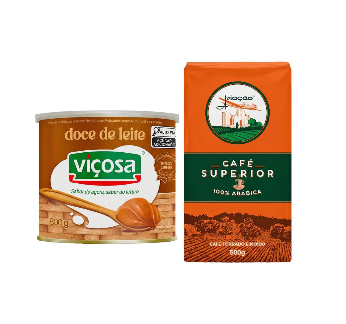 Kit especial com Doce de Leite Viçosa 800g e Café Superior Aviação 100% Arábica 500g. Combinação perfeita para quem aprecia sabor, qualidade e tradição. Ideal para consumo diário, presente ou momentos especiais.