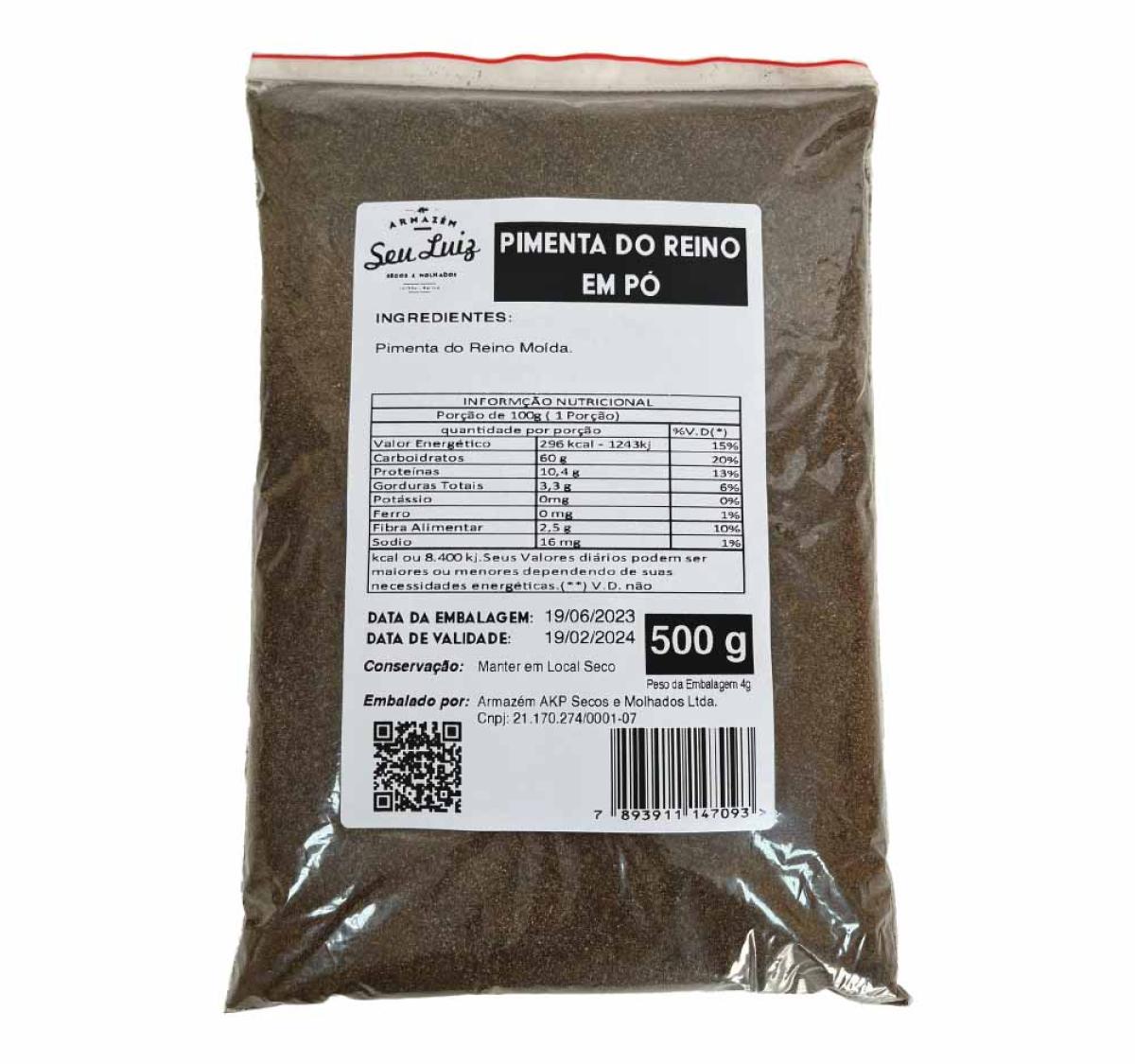 Pimenta-do-Reino Moída 500g Armazém Seu Luiz: frescor, sabor intenso e praticidade. Ideal para carnes, molhos e pratos do dia a dia.