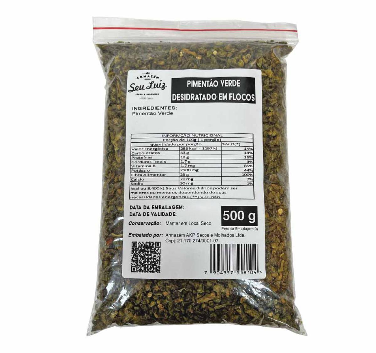 O Pimentão Verde Desidratado em Flocos Armazém Seu Luiz 500g é a opção ideal para trazer o sabor fresco e levemente adocicado do pimentão verde para suas receitas de forma prática e duradoura.