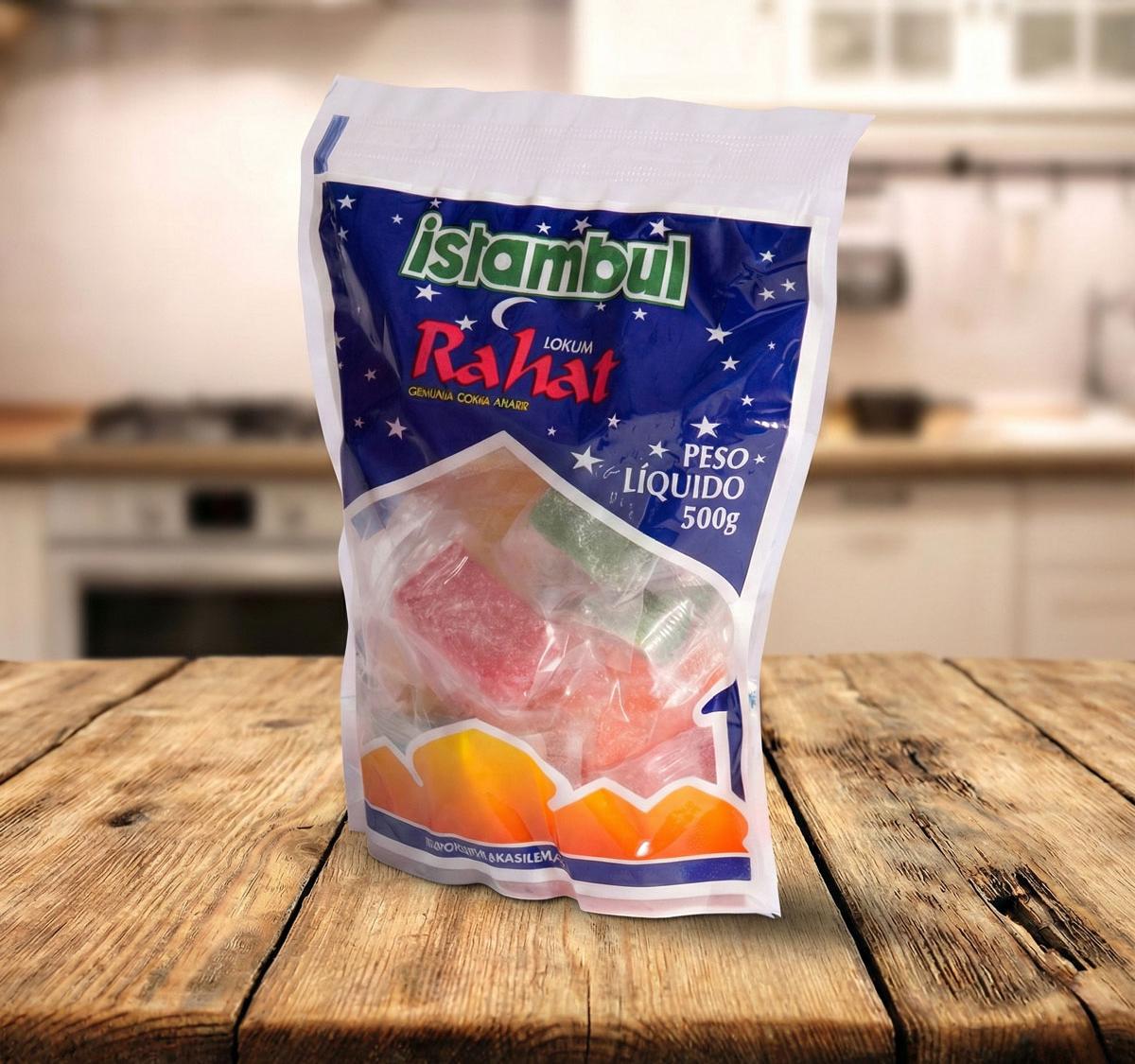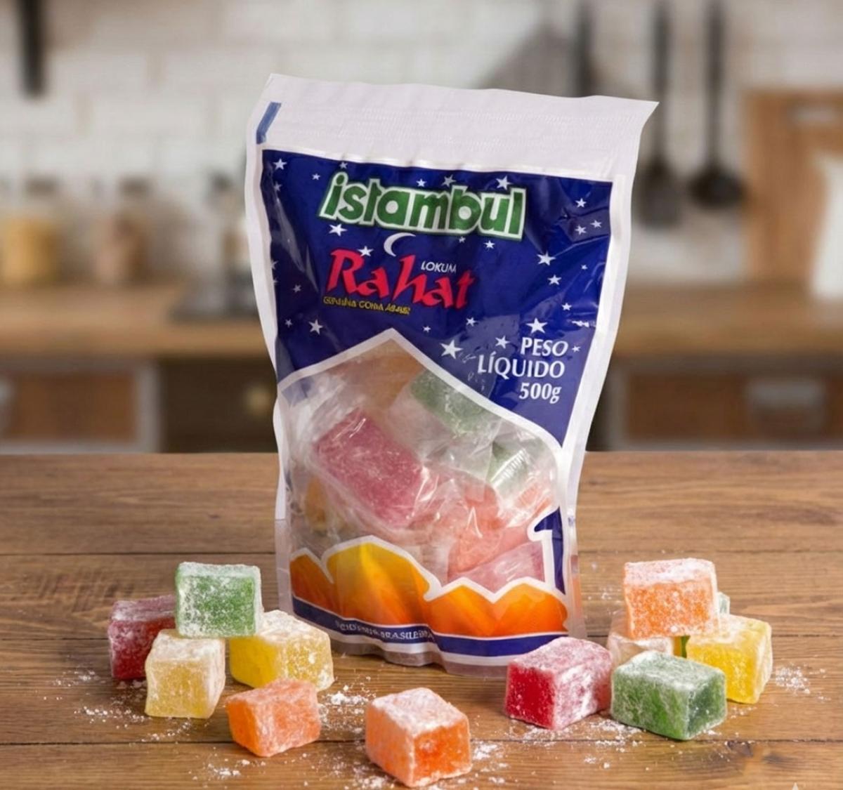O Rahat Istambul Goma Árabe é um doce tradicional do Oriente Médio, conhecido por sua textura macia, sabor suave e delicado e aroma característico. Produzido com goma árabe, é ideal para quem aprecia doces típicos, refinados e com perfil menos enjoativo.