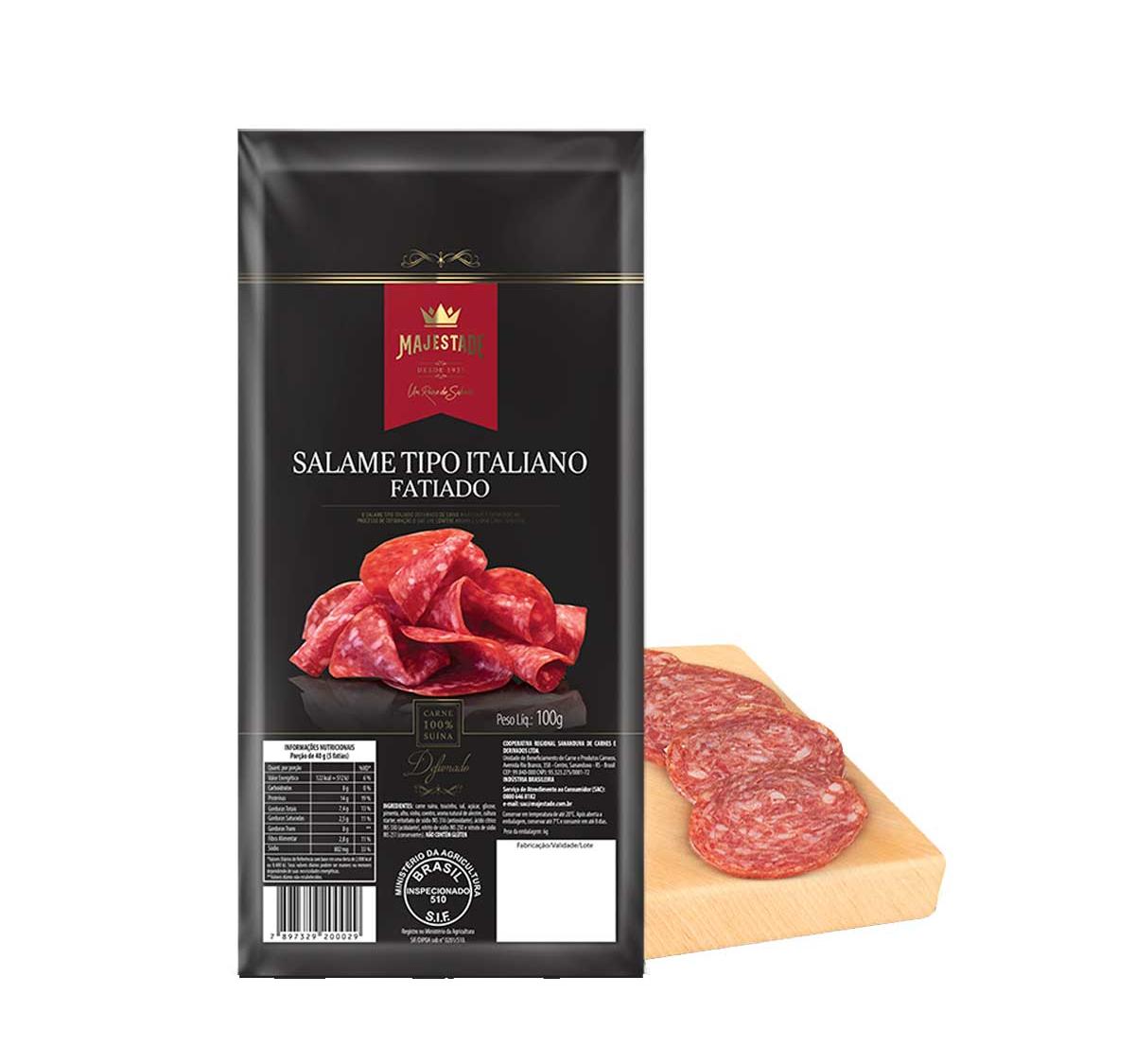 O Salame Italiano Fatiado Majestade 100g é a escolha perfeita para quem aprecia a tradição da charcutaria.