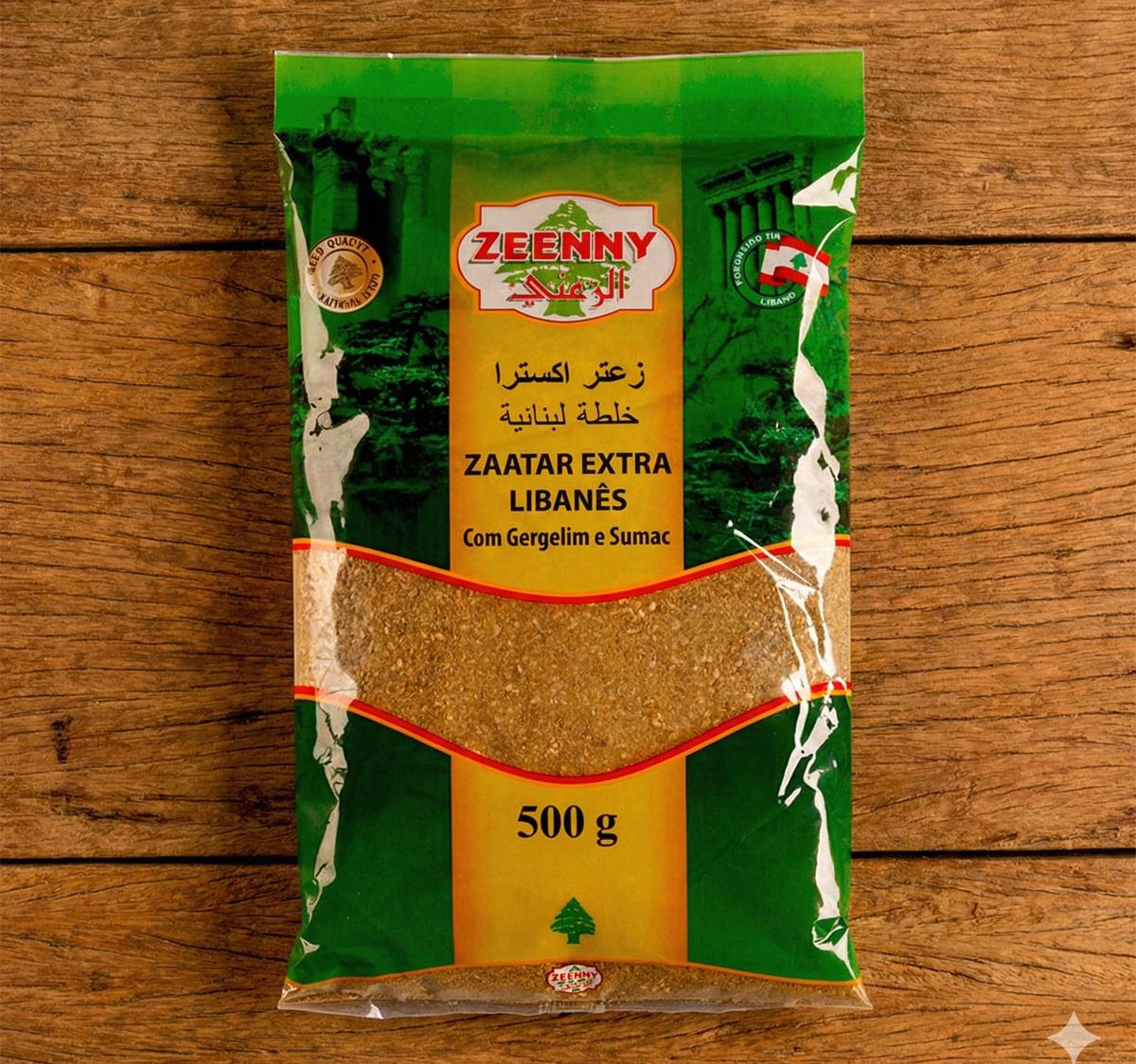 Produzido pela marca Zeenny, este zaatar oferece qualidade importada, excelente rendimento e autenticidade gastronômica.