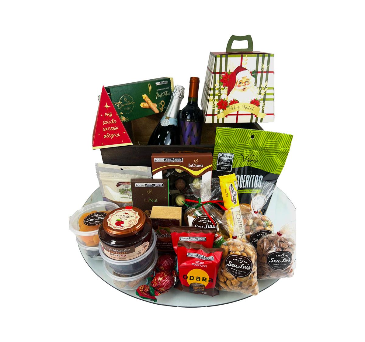 A Cesta de Natal Parque Tanguá – Armazém Seu Luiz reúne uma seleção clássica e deliciosa de produtos natalinos, unindo frutas secas premium, doces tradicionais, chocolates especiais e duas bebidas de excelência. É uma cesta equilibrada, elegante e com excelente custo-benefício para presentear no Natal.