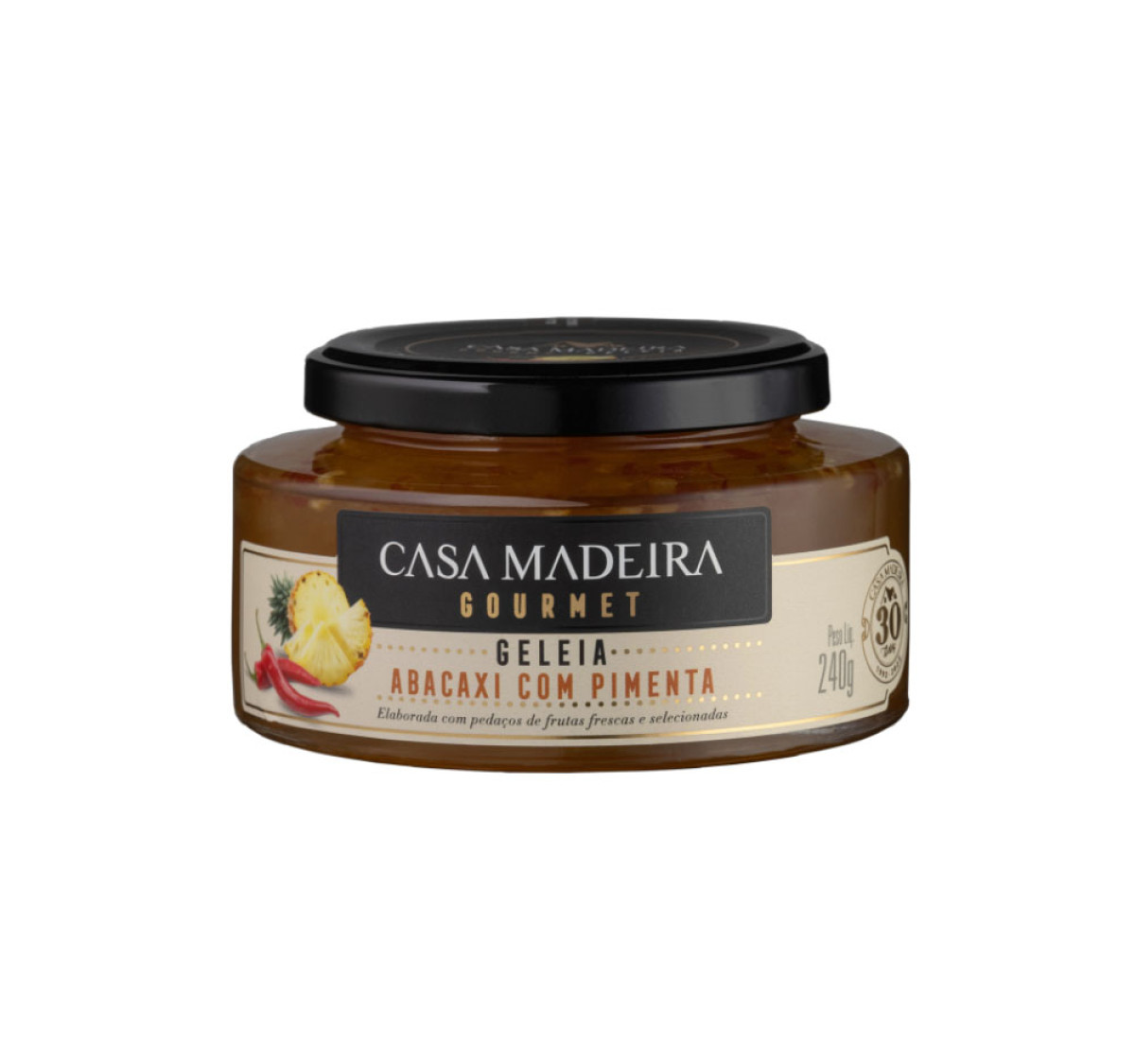 A Geleia Gourmet de Abacaxi com Pimenta Casa Madeira 240g é uma criação sofisticada que combina o frescor tropical do abacaxi com o toque picante e envolvente da pimenta. Produzida pela Casa Madeira, marca referência em produtos gourmet, traz equilíbrio perfeito entre doce, ácido e picante, resultando em uma experiência gastronômica única.