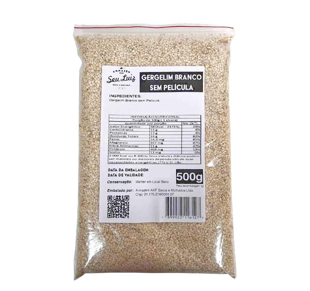 O Gergelim Branco Sem Película 500g Armazém Seu Luiz é uma excelente fonte de nutrientes, perfeito para enriquecer suas receitas de forma prática e saudável. Livre da película externa, possui sabor mais suave, textura delicada e melhor digestibilidade, tornando-se ideal para uso culinário variado.