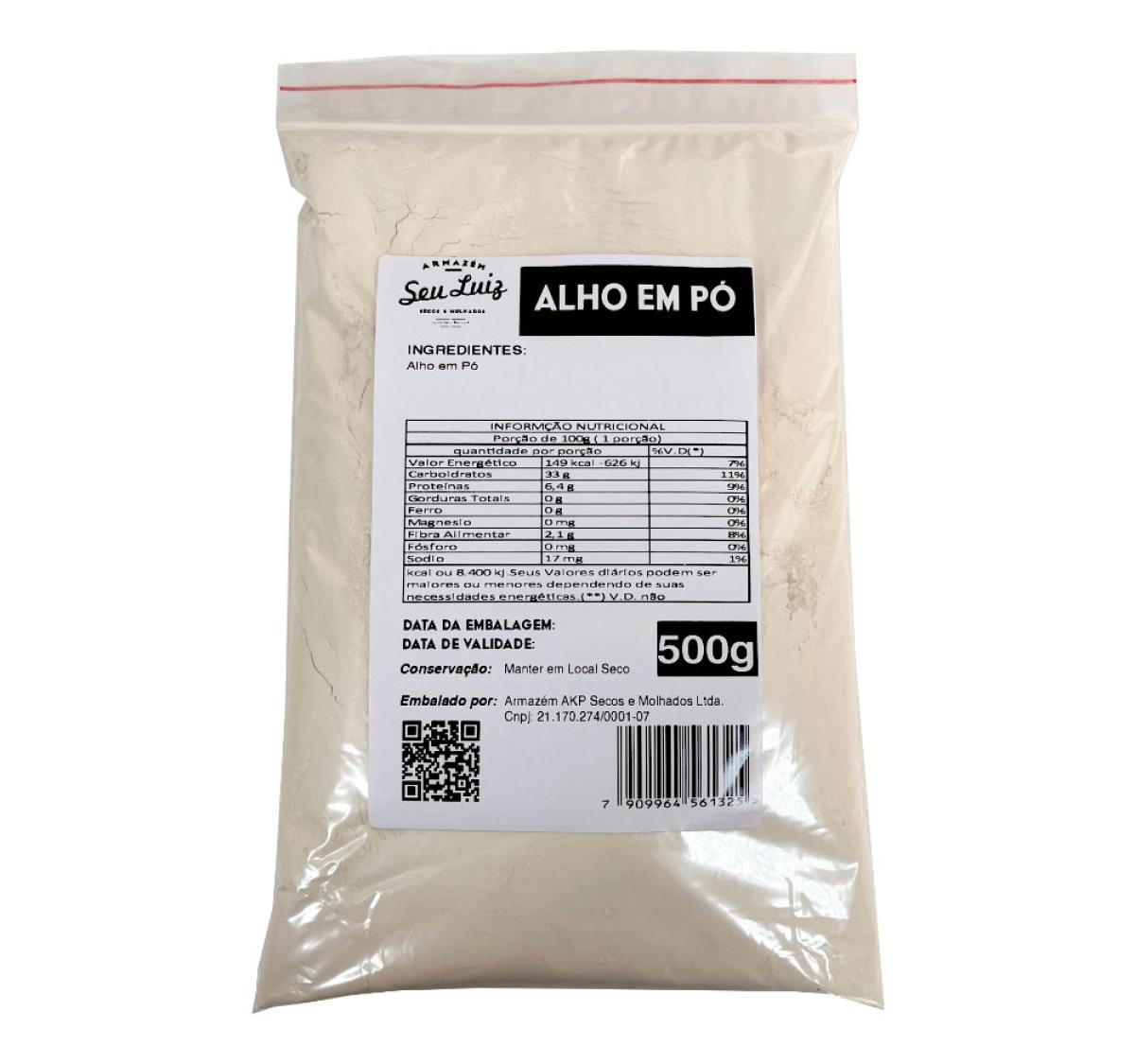 Cada embalagem contém 500g de alho em pó 100% puro, sem adição de sal, conservantes ou aditivos. Um produto versátil, indicado tanto para uso doméstico quanto profissional, muito utilizado em restaurantes, lanchonetes, cozinhas industriais e preparos em grande escala.