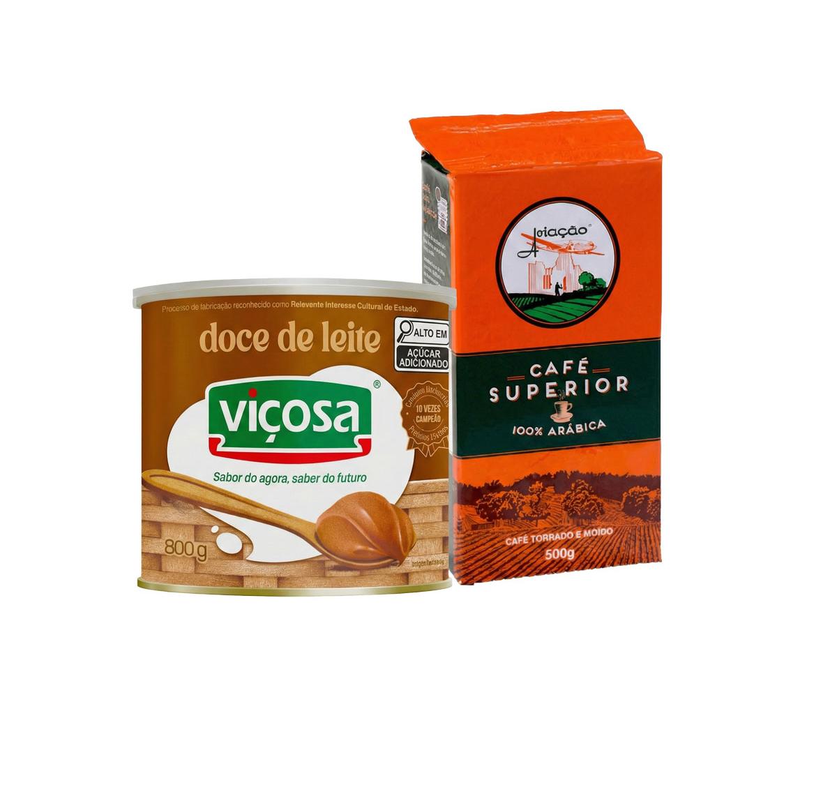 Kit especial com Doce de Leite Viçosa 800g e Café Superior Aviação 100% Arábica 500g. Combinação perfeita para quem aprecia sabor, qualidade e tradição. Ideal para consumo diário, presente ou momentos especiais.
