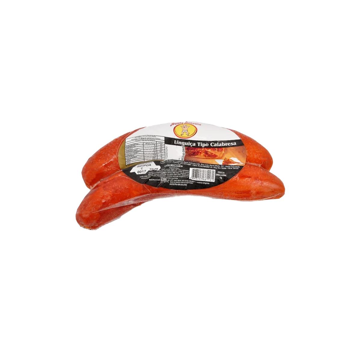 A Linguiça Tipo Calabresa Santo Antonio é produzida com cortes de carnes suínas selecionadas, com um sabor de defumado no ponto e temperos especiais é a linguiça perfeita para ser utilizada em diversas receitas. Peso aproximado 450 gramas.