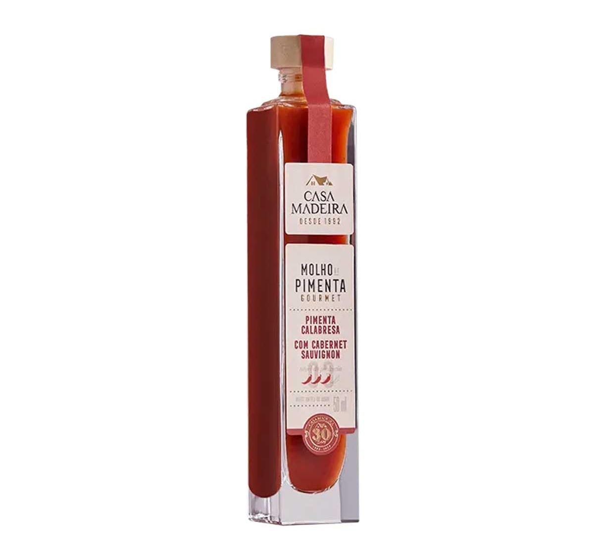 O Molho de Pimenta Calabresa com Cabernet Sauvignon Casa Madeira 50ml é uma combinação sofisticada que une a intensidade da pimenta calabresa com o toque aromático e elegante do vinho Cabernet Sauvignon.