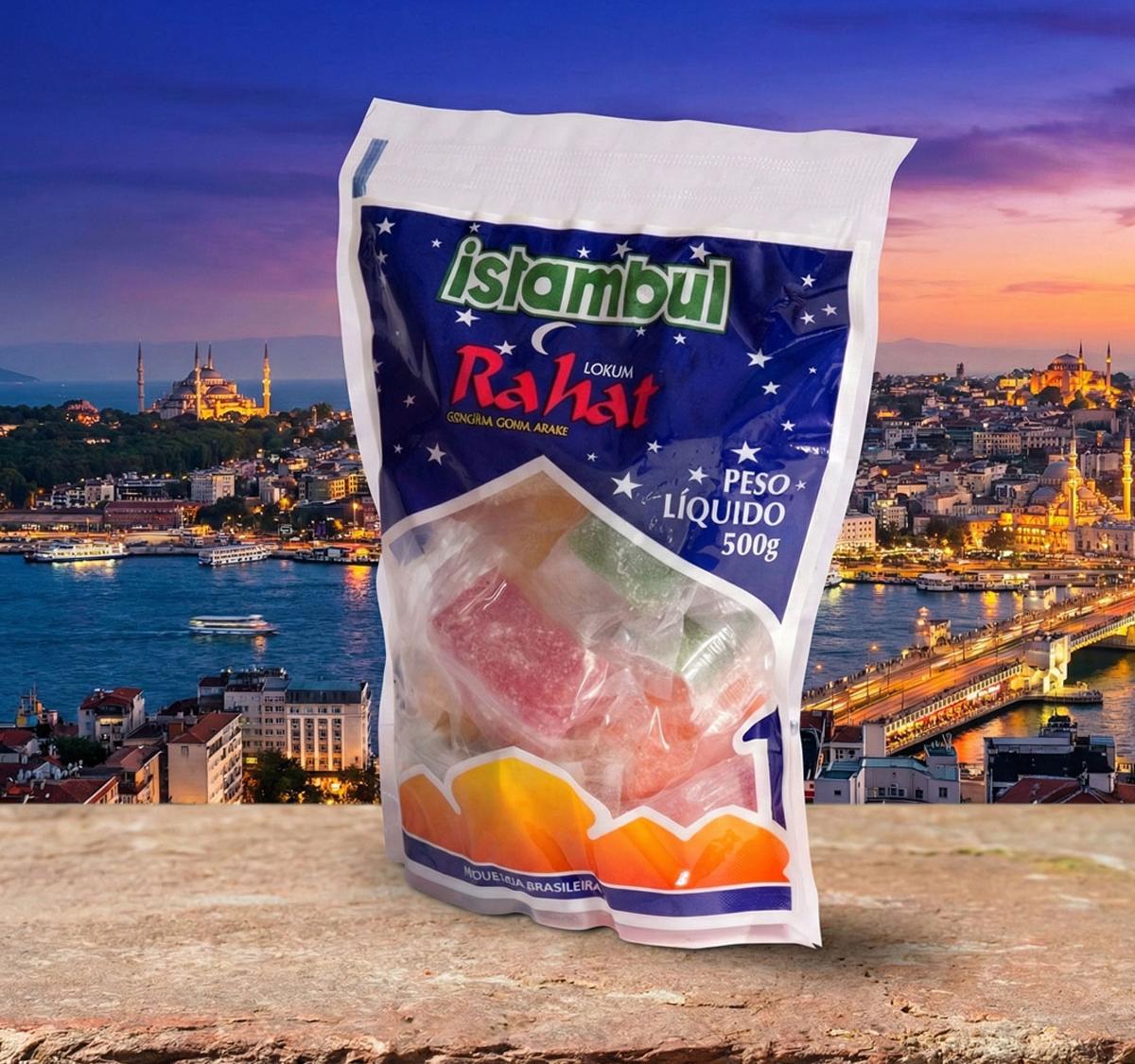 O Rahat Istambul Goma Árabe é um doce tradicional do Oriente Médio, conhecido por sua textura macia, sabor suave e delicado e aroma característico. Produzido com goma árabe, é ideal para quem aprecia doces típicos, refinados e com perfil menos enjoativo.
