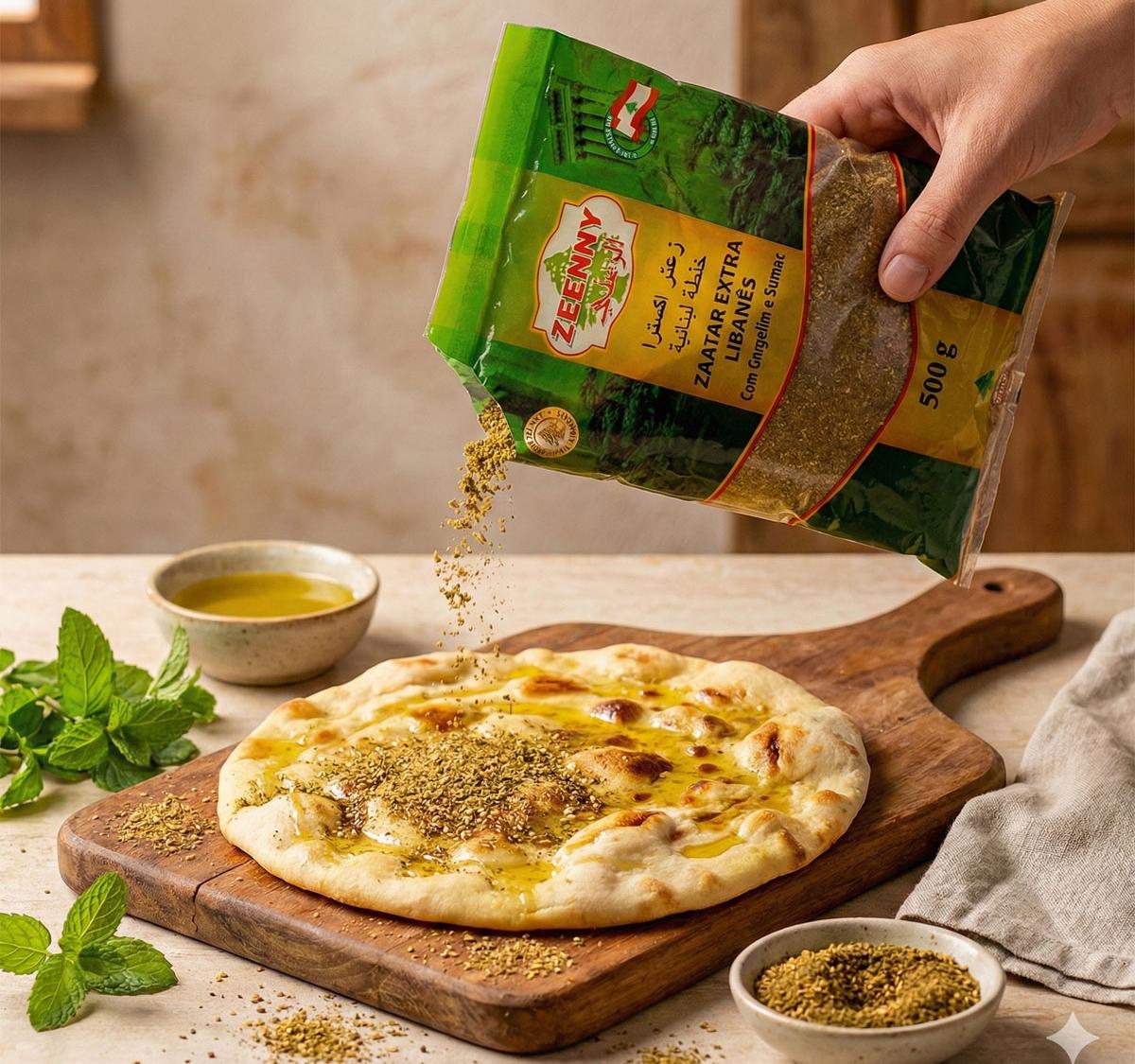 Produzido pela marca Zeenny, este zaatar oferece qualidade importada, excelente rendimento e autenticidade gastronômica.